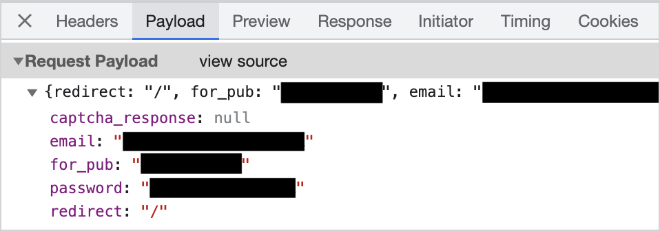 From a technical perspective, we “just” need to figure out the POST data the browser is sending when we login. We can do that by logging out, opening the developer console, and inspecting the request when we log in: